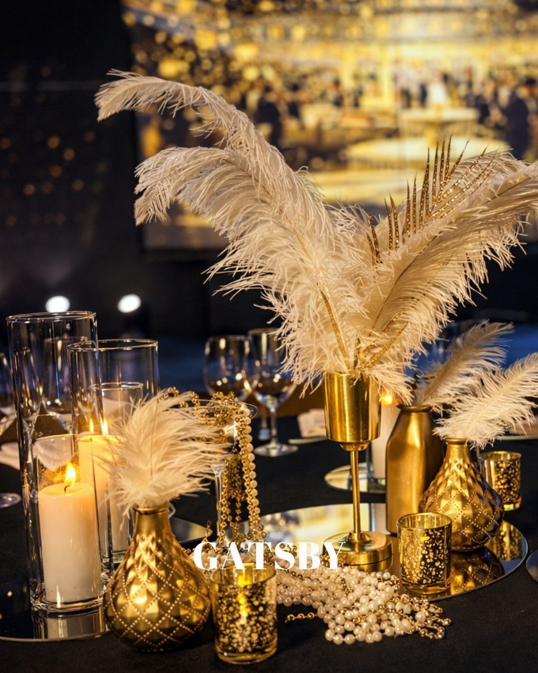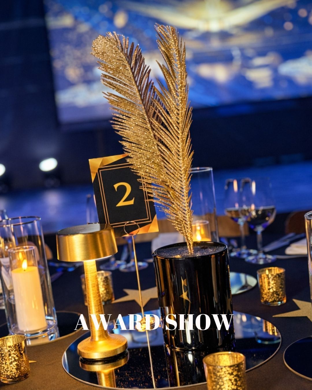 krystall lysekroner, gull og en scene som setter tonen for kvelden.